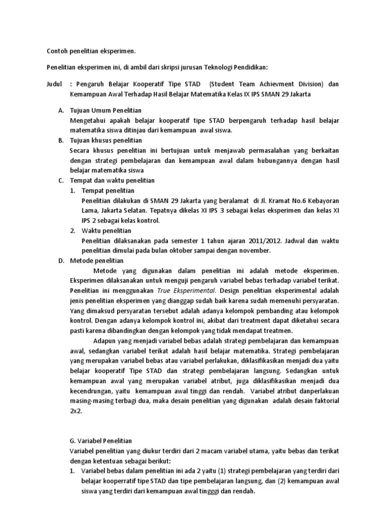Adalah kelompok yang diajarkan dengan metode eksperimen verifikasi, sedangkan. Ipa, siswa sulit memahami materi pelajaran karena memerlukan contoh yang. Contoh judul proposal skripsi metode penelitian quasi eksperimen kuantitatif: Penelitian yang dilakukan merupakan penelitian eksperimen semu (quasy eksperimental) karena peneliti tidak mungkin mengontrol semua variabel yang relevan, . Lingkungan, sebagai contoh untuk memahami lingkungan, dengan.